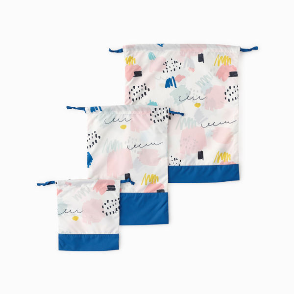 巾着3枚セットコップやお着替え、上履きなど様々な用途に対応する巾着3枚セット。遊び心あるデザインが魅力です。 -